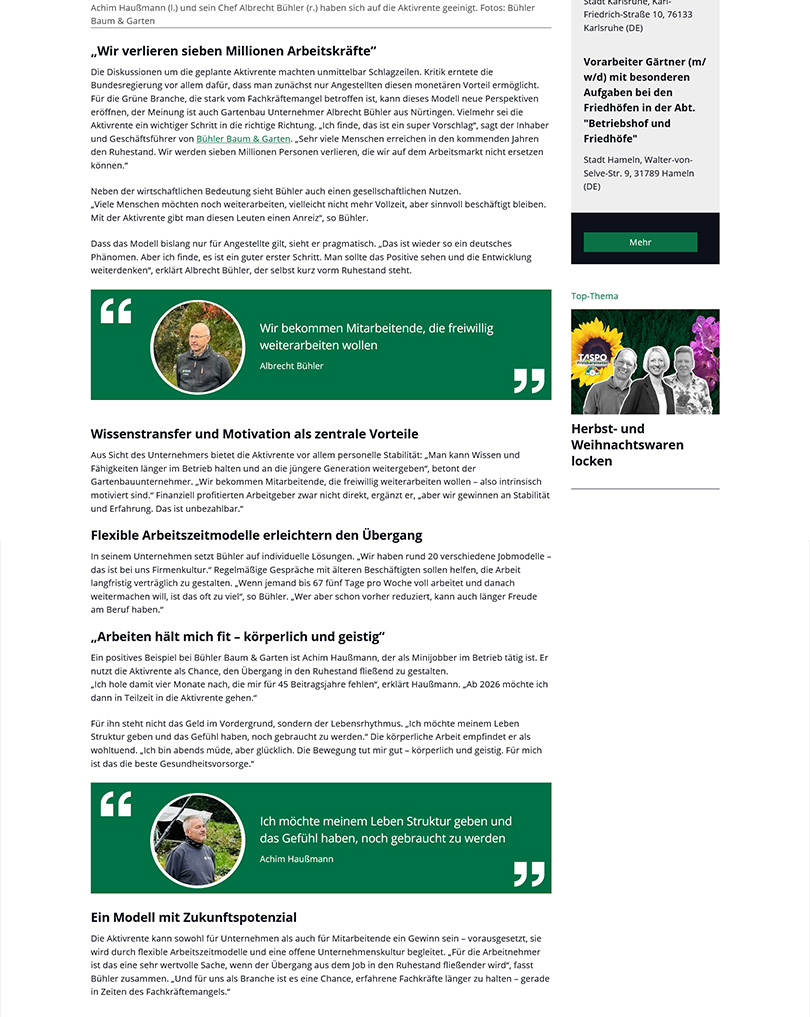 Artikel in der TASPO – Die Zeitung für den Grünen Markt.